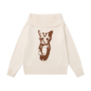 Off-Shoulder Cat Print Trendy Sweater