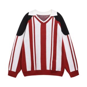Motorcycle-Style Color-Blocked Striped Sweater