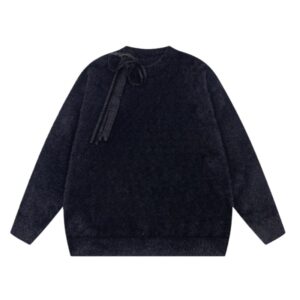 Black Fluffy Bow Pullover Sweater